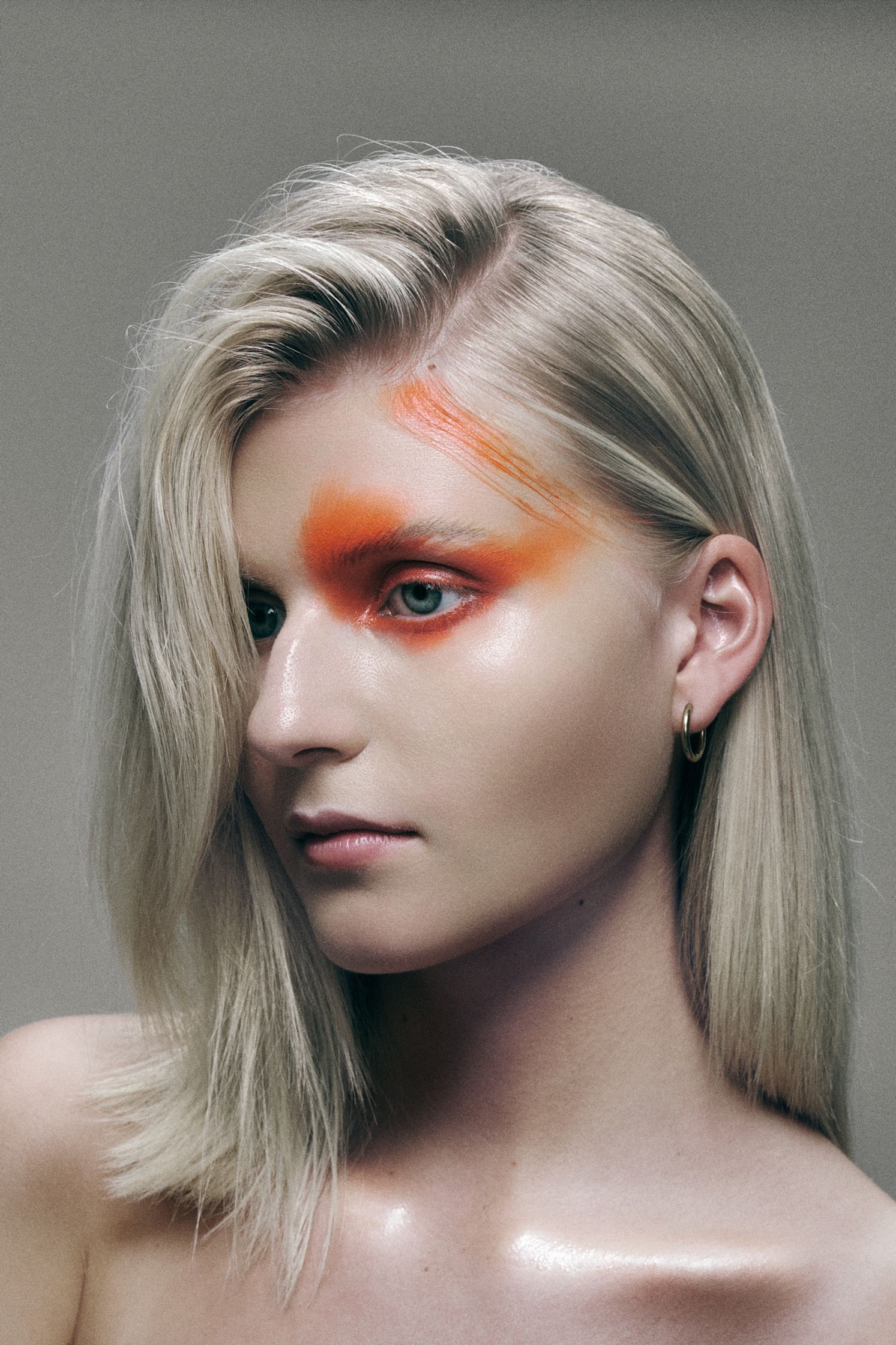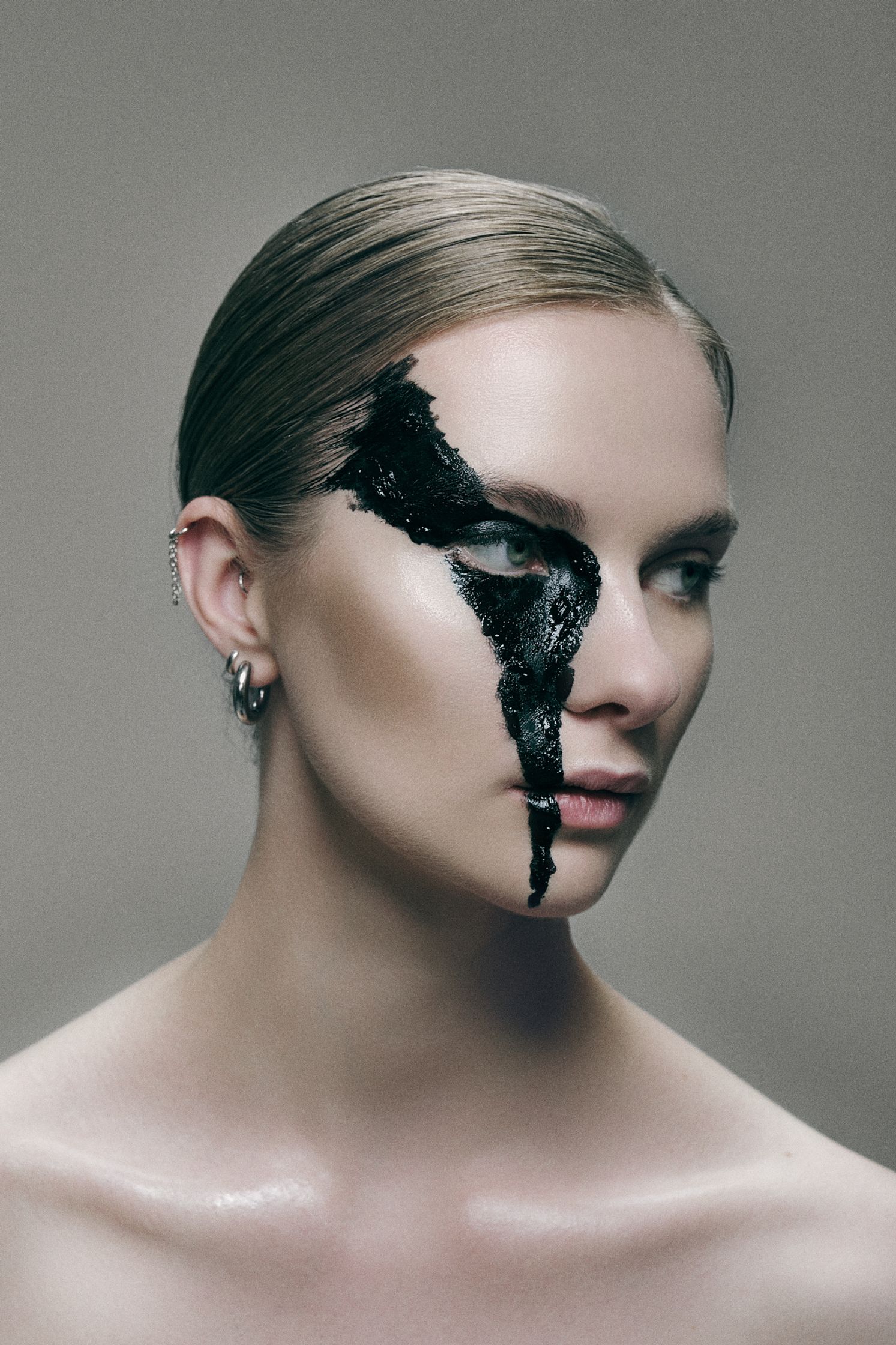 Which leads to a contradiction at the centre of this series, one I don't try to resolve. The work is staged. It is conceptual, pre-planned, art-directed down to the makeup on the skin. And yet what I pursue within that framework is rawness, a feeling of directness, of something unfinished, something that hasn't been smoothed over for the sake of comfort. The precision is necessary. The images need to be visually still, almost too clean, so that the ambiguity beneath them has room to breathe. If the surface were chaotic, it would push the viewer toward a reading. The tension would collapse. The threshold would close.